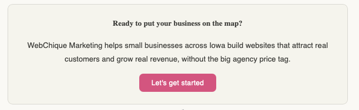 In Iowa's small towns and rural communities, there is still a window of opportunity. Most of your neighbors have not made this move yet, which means the business that builds a strong online presence now will own that digital real estate for years to come.